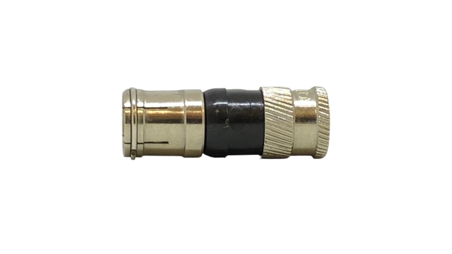 Conector de compressão F rápido (Quick-F) para cabos coaxiais tipo RG6.