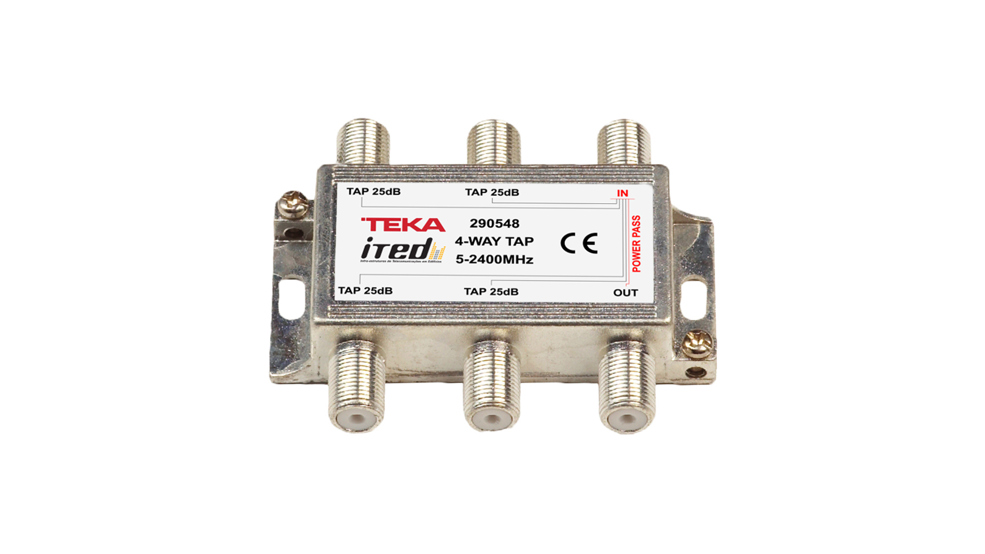 Derivador de 4 vias, Classe A, com portas F para utilização nas redes SMATV.