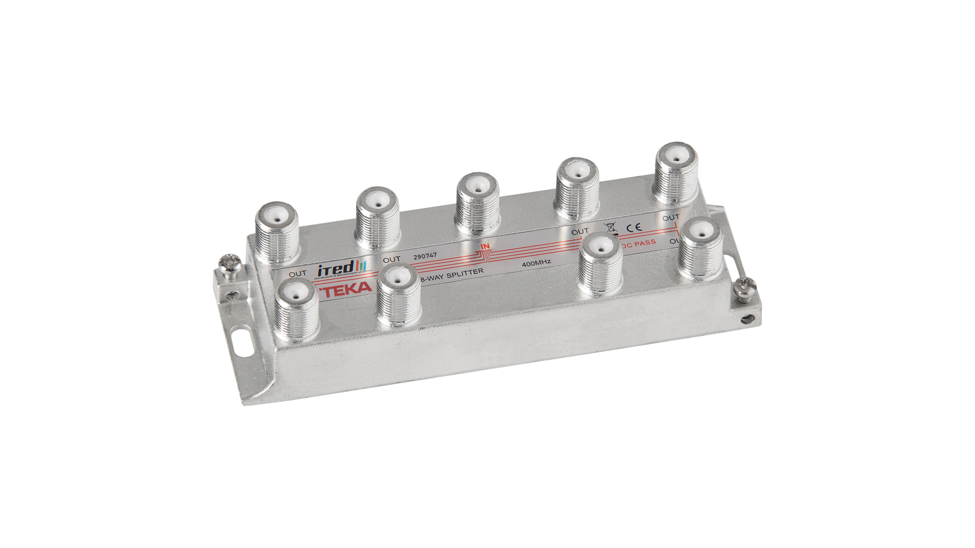 Repartidor com portas F frontais de 8 vias para utilização nas redes SMATV.